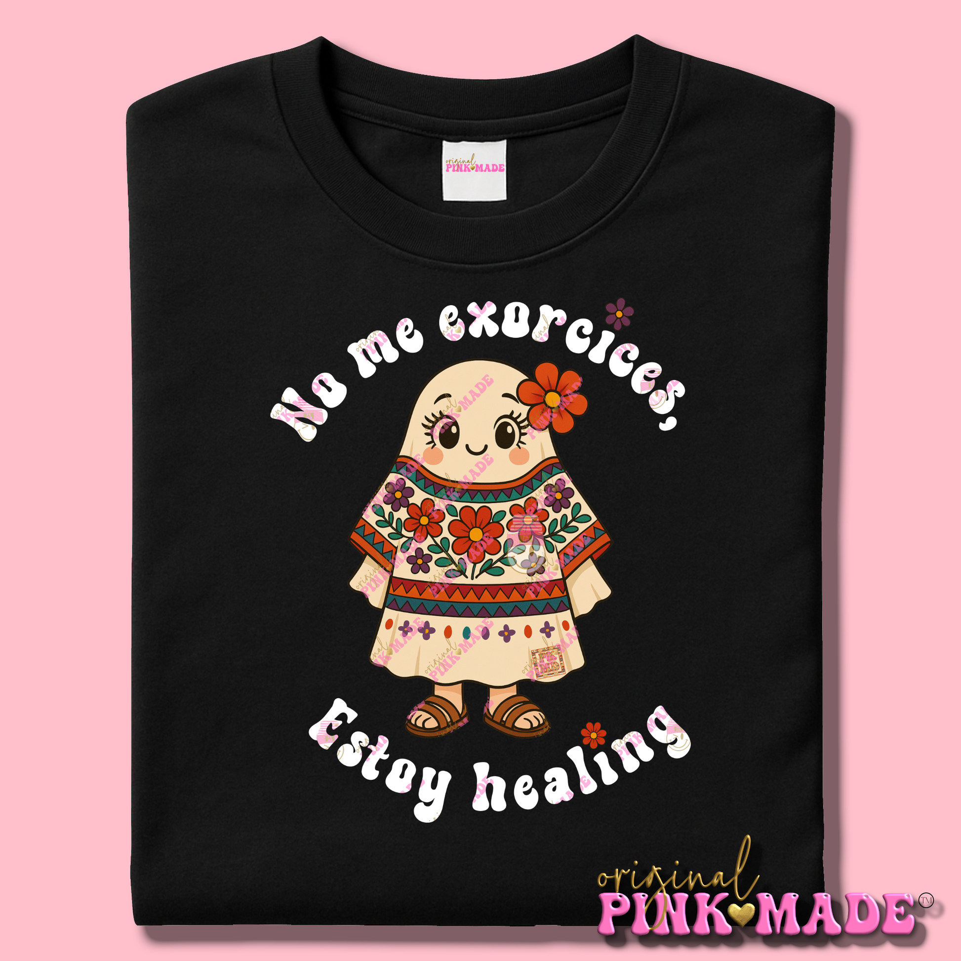 When your tía thinks a bad mood needs a limpia and an exorcismo, but you're just vibin' and healing, our "No me excorsises, estoy healing" t-shirt is your perfect disclaimer. Wear it proudly.